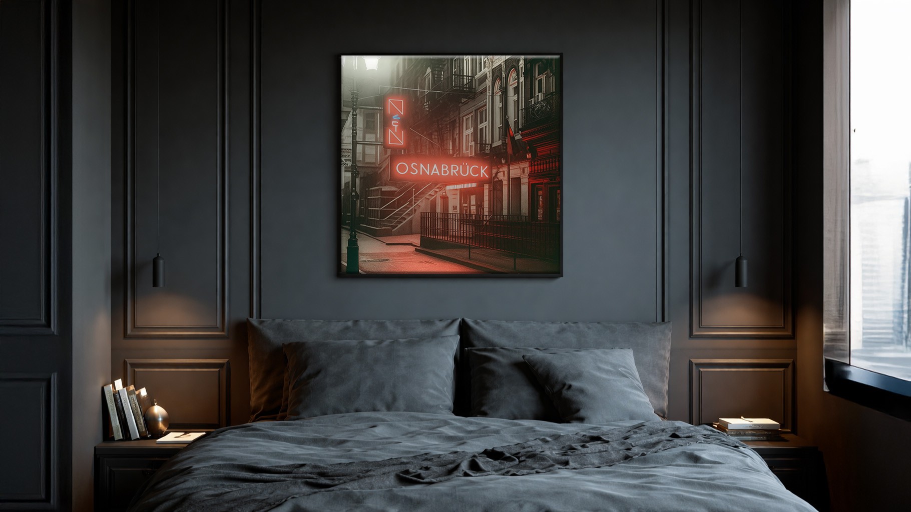 Das Hotel am Neumarkt wollte seine besondere Lage in der Osnabrücker Altstadt auch in den Zimmern erlebbar machen. Ziel war es, Moderne und Tradition miteinander zu verbinden.Die entwickelten Artworks spielen bewusst mit Stilbrüchen und Kontrasten, um den Wandel der Stadt sichtbar zu machen. Ein visuelles Spannungsfeld zwischen historischer Umgebung und zeitgemäßem Hotelkonzept.